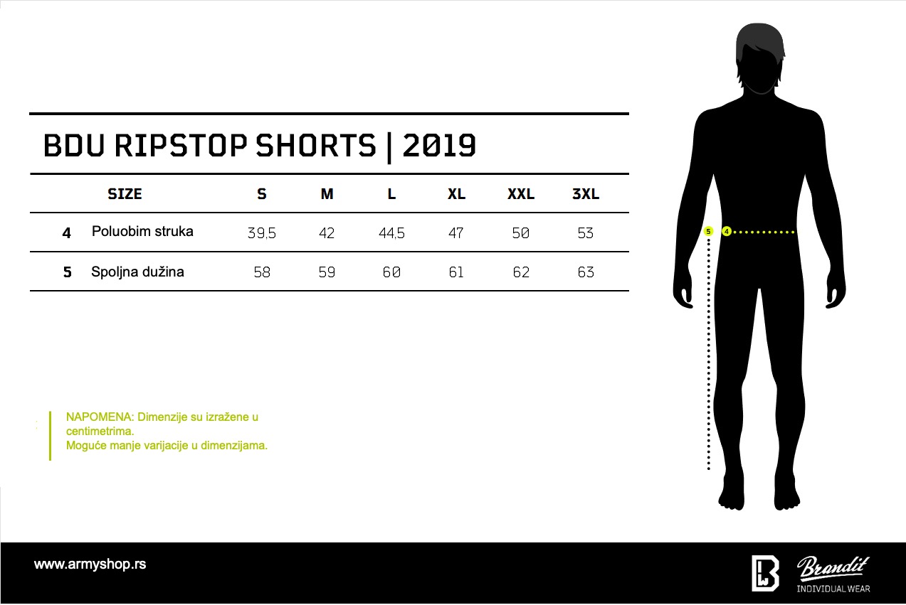 Bermude BDU ripstop by Brandit bermude su izrađene od ripstop platna i imaju relaksiran kroj, pogodne za terensku i svakodnevnu upotrebu. Prilagođene su za proleće i leto, dostupne u dark camo boji i veličinama S–3XL.