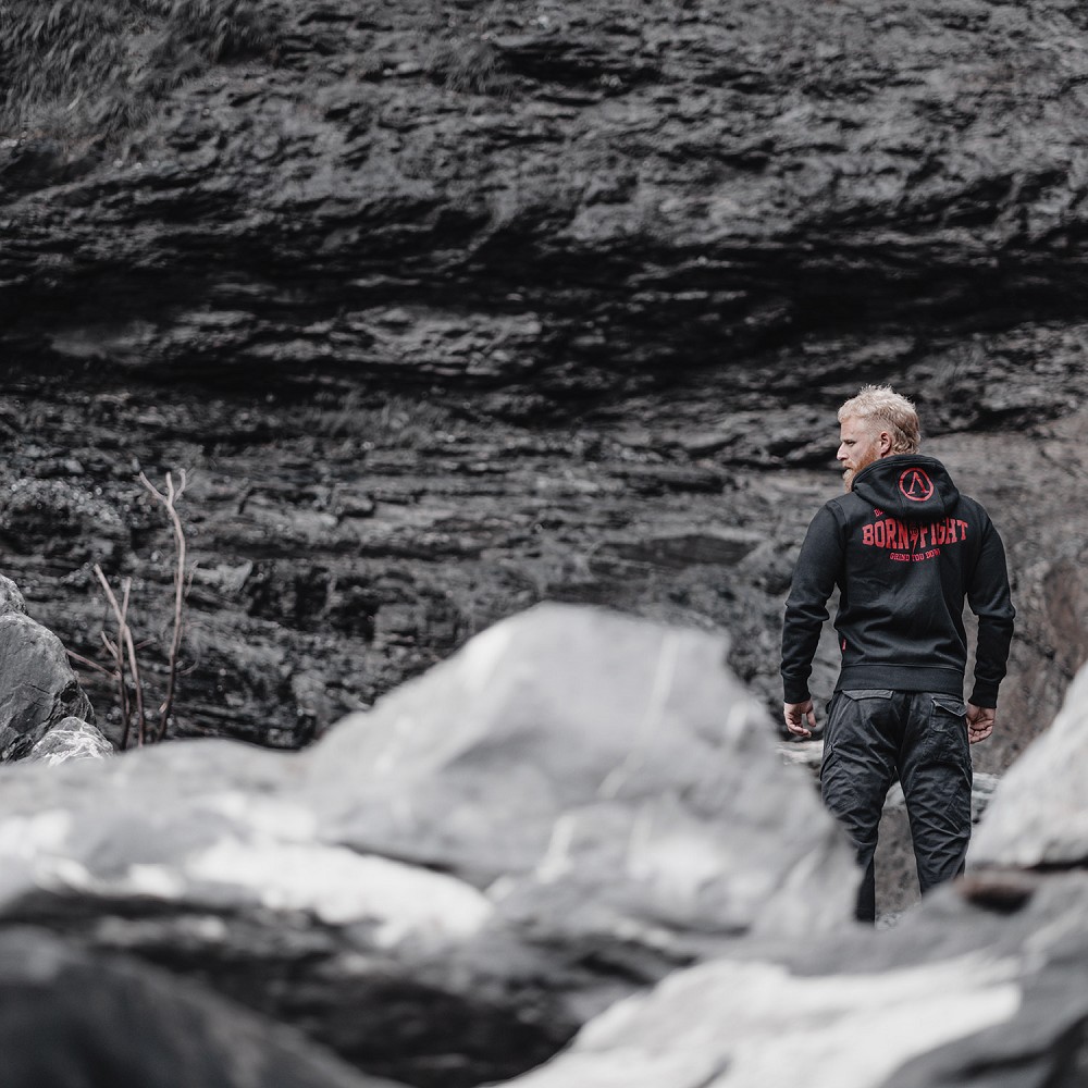 Duks sa kapuljačom Born to fight Thor Steinar dukserica sportskog kroja sa printom na leđima. Sastav 70% pamuk i 30% poliester, praktična za trening i svakodnevno nošenje tokom proleća i jeseni.