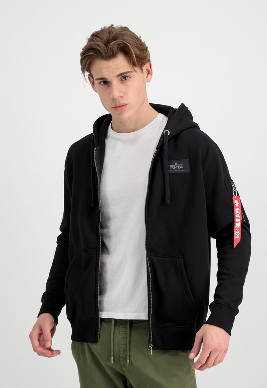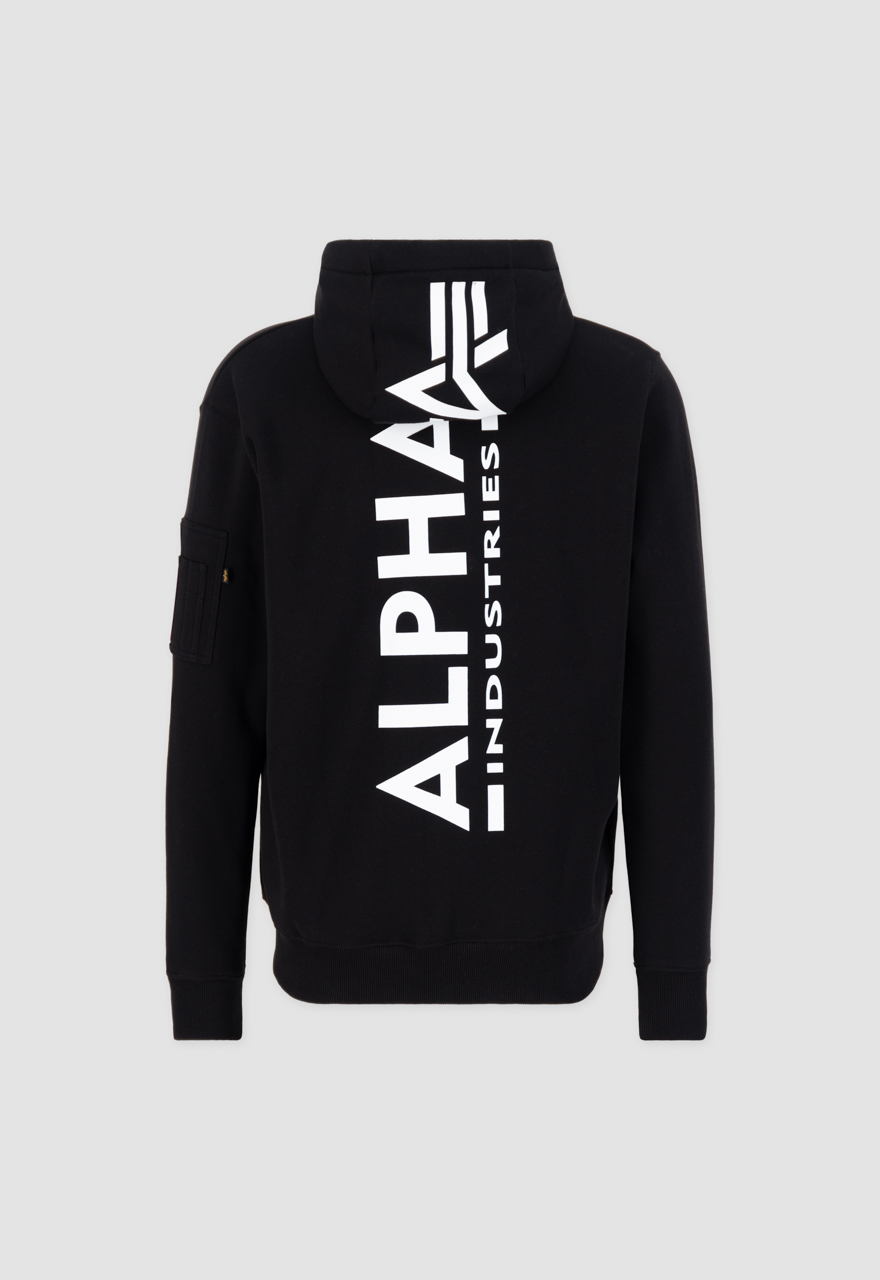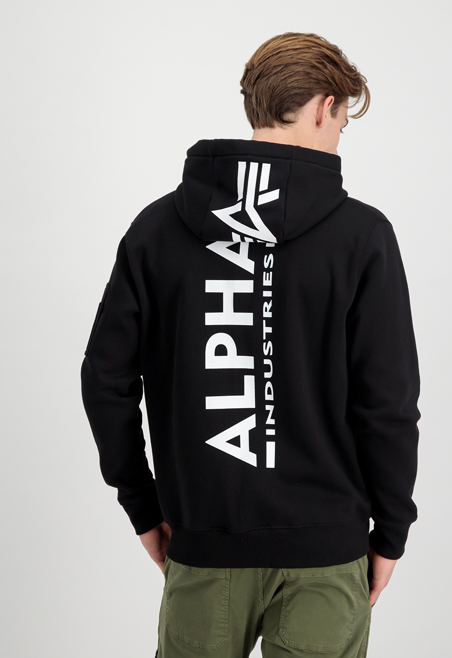 Alpha Industries Back print zip hoody duks sa kapuljačom (dukserica) od 80% pamuka i 20% poliestera, sa regular fit krojem i punim rajsferšlusom. Namenjen za svakodnevno nošenje u proleće i jesen, a zimi kao sloj; logo je na leđima.