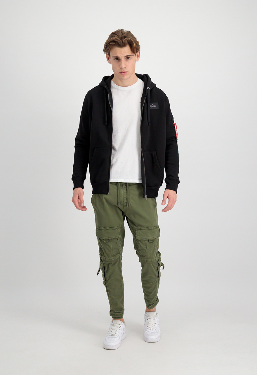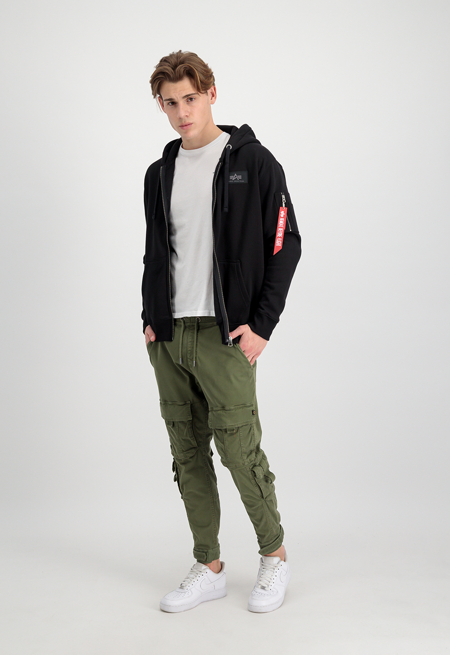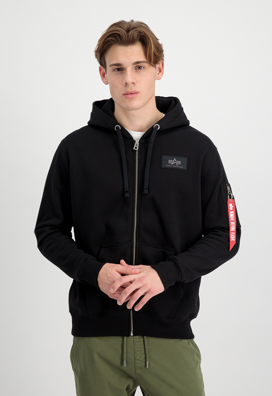 Alpha Industries Back print zip hoody duks sa kapuljačom (dukserica) od 80% pamuka i 20% poliestera, sa regular fit krojem i punim rajsferšlusom. Namenjen za svakodnevno nošenje u proleće i jesen, a zimi kao sloj; logo je na leđima.