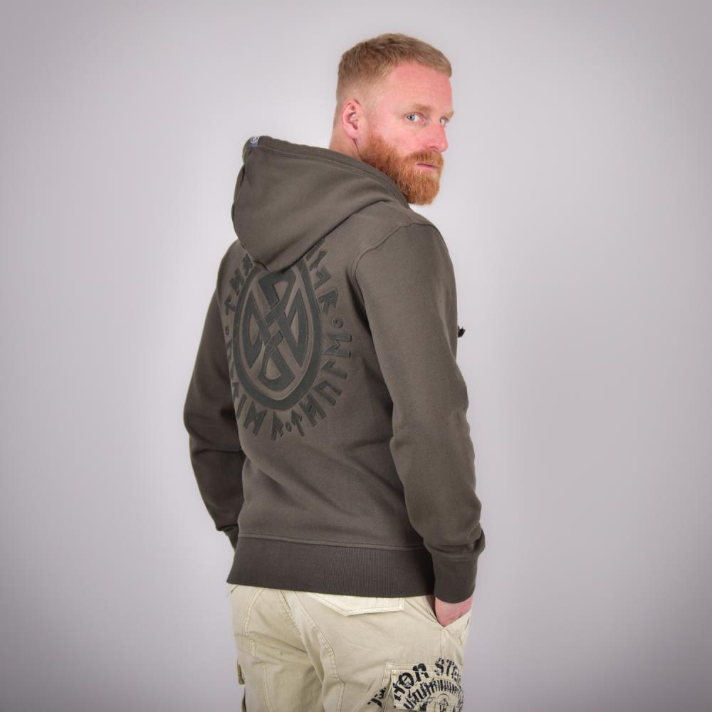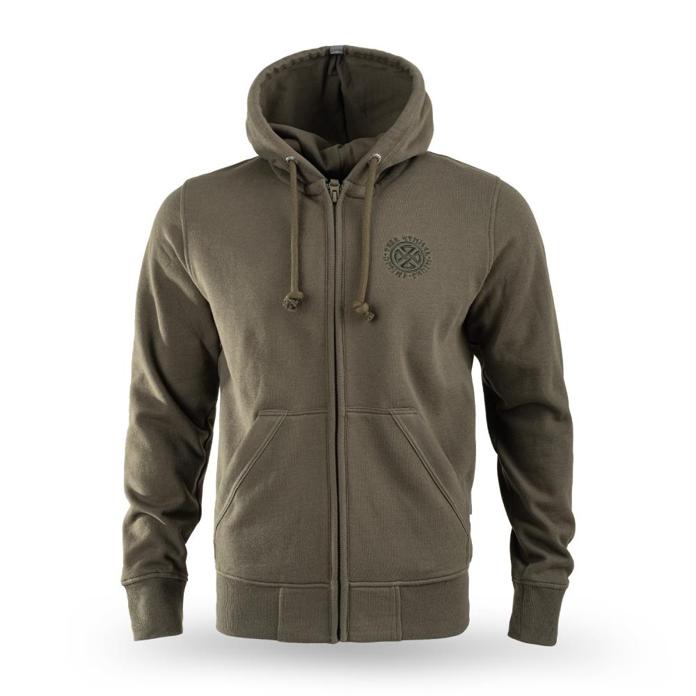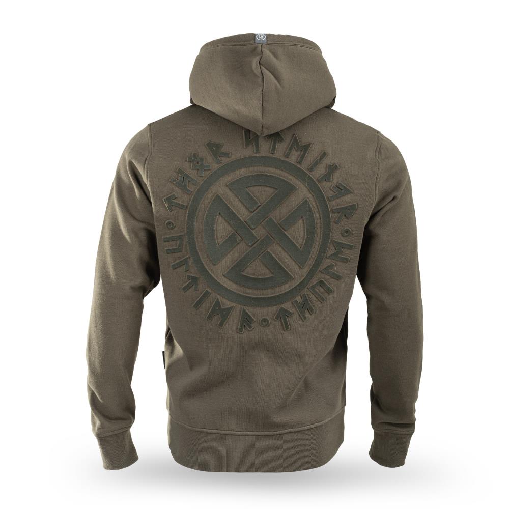 Duks sa kapuljačom Stord Thor Steinar muški duks sa kapuljačom u maslinastoj boji, regularnog kroja, od prijatnog materijala za jesen i zimu. Ova majica sa kapuljačom ima dva prednja džepa, mali logo na grudima i 3D štampu na leđima; pogodna za svakodnevno nošenje i slojevito oblačenje.