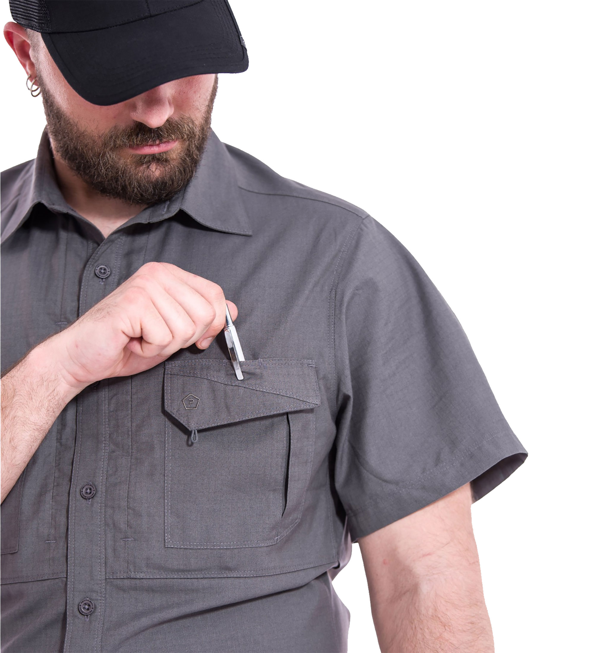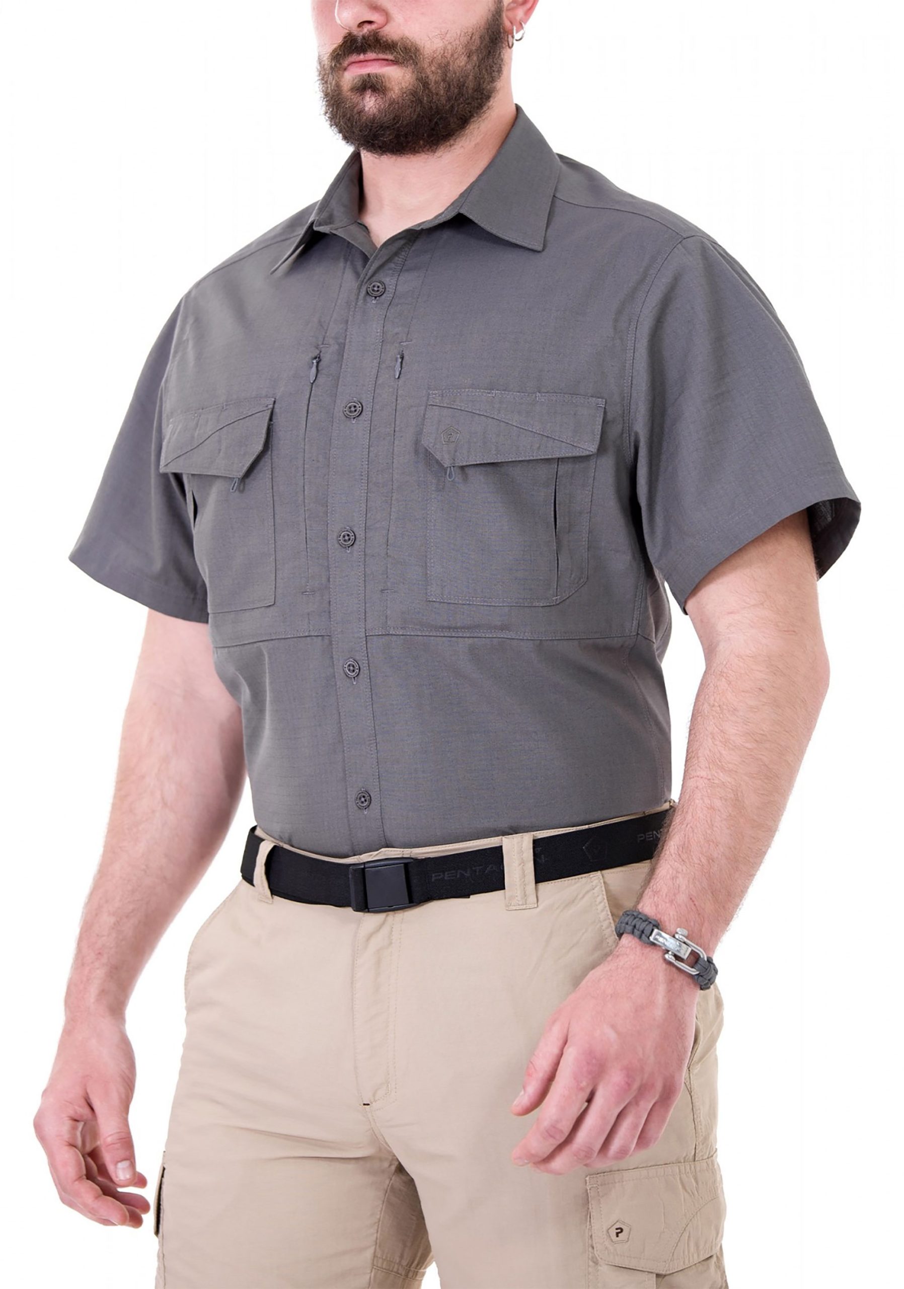 Košulja kratkog rukava Pentagon Plato je terenska košulja od 79% poliestera i 21% pamuka sa rip-stop tkanjem i Teflon zaštitom od fleka i vode. Ima dva skrivena džepa na grudima i regularan kroj, namenjena za letnje i prelazne sezone.