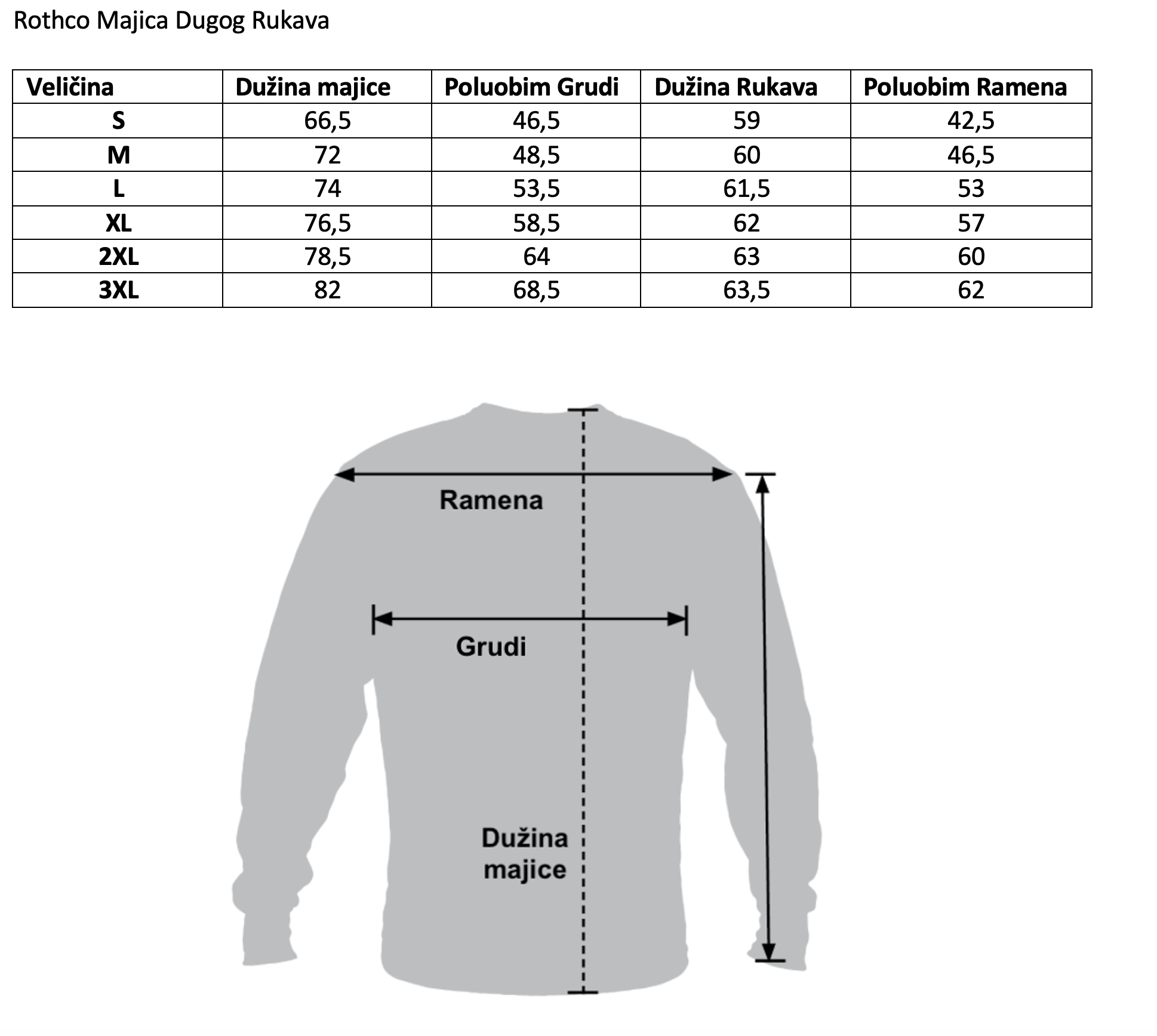 | Veličina | Dužina majice | Poluobim grudi | Dužina rukava | Poluobim ramena |