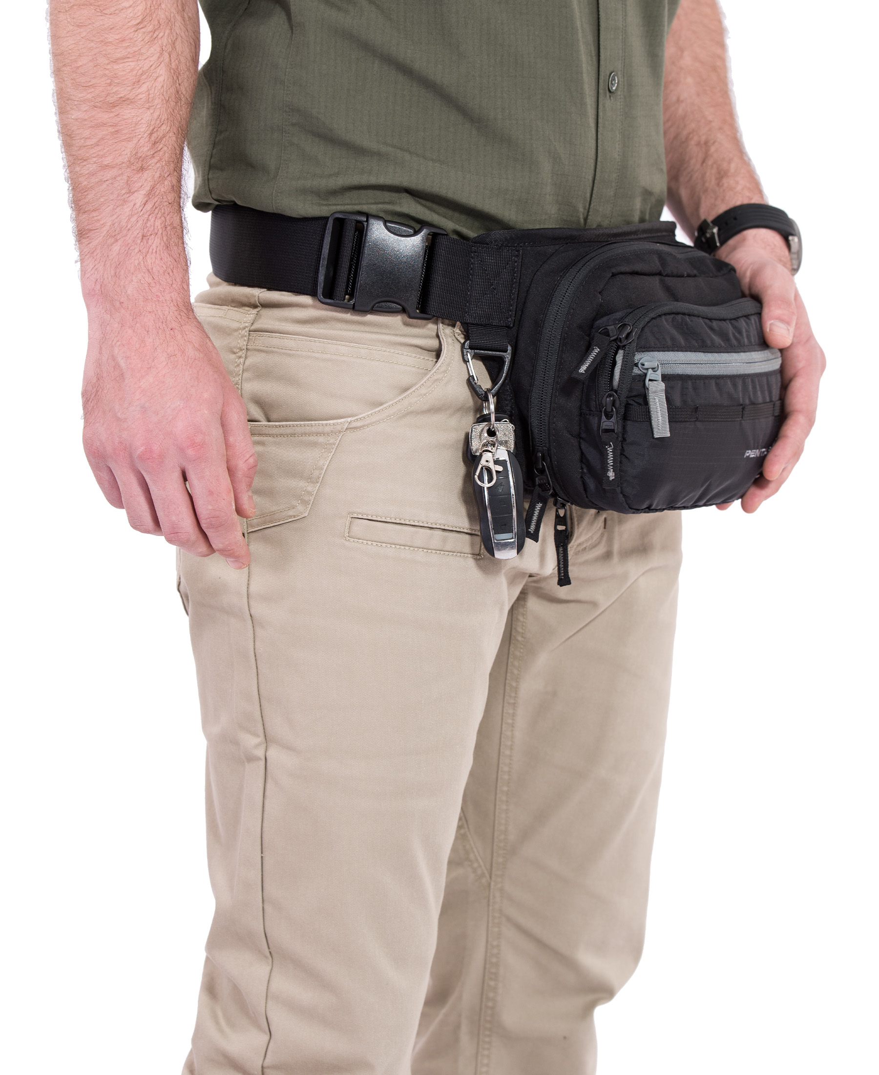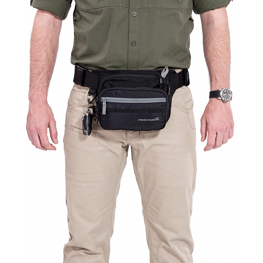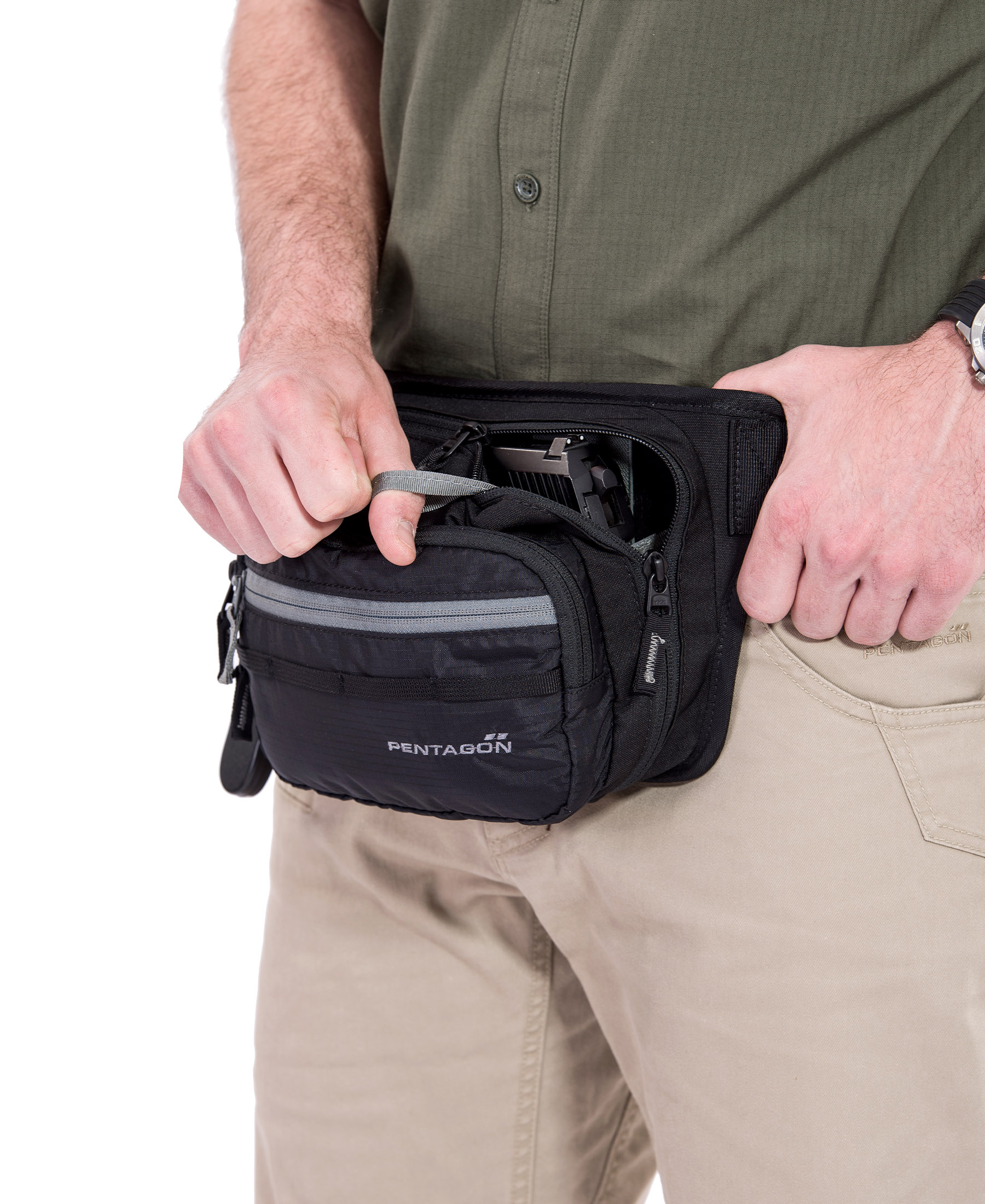 Pentagon Runner torbica za oružje je futrola oko struka od rip-stop poliestera, sa više pregrada i rajsferšlusima za brz pristup. Praktična za taktične aktivnosti i terenski rad, pogodna za celogodišnje korišćenje.