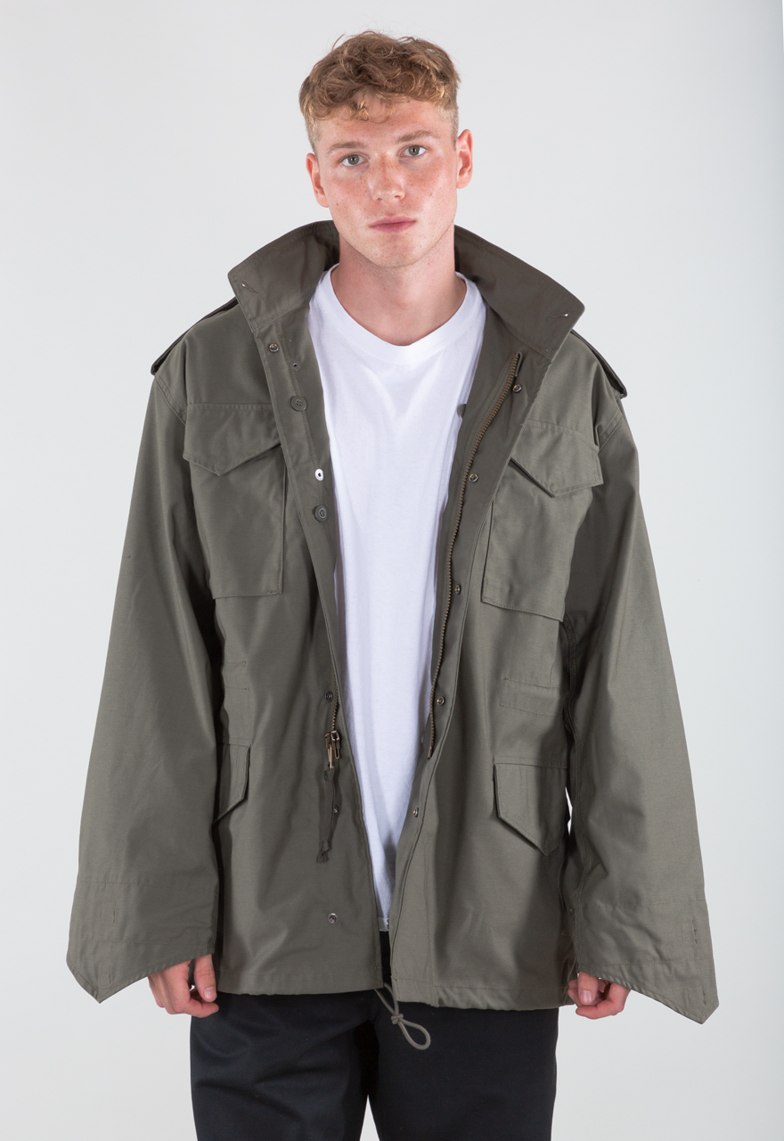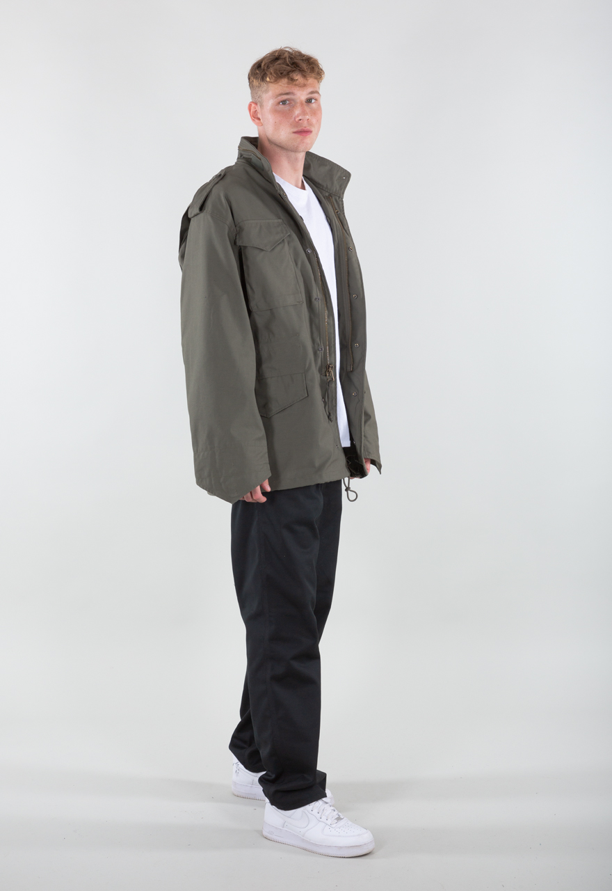 Vijetnamka M65 Alpha Industries jakna od impregniranog materijala (50% pamuk, 50% najlon) ima praktičan kroj i otpornost na vetar, pogodna za proleće, jesen i kao deo zimske opreme. Dizajnirana za aktivnosti na otvorenom i svakodnevnu upotrebu, sa više džepova i skrivenom kapuljačom.