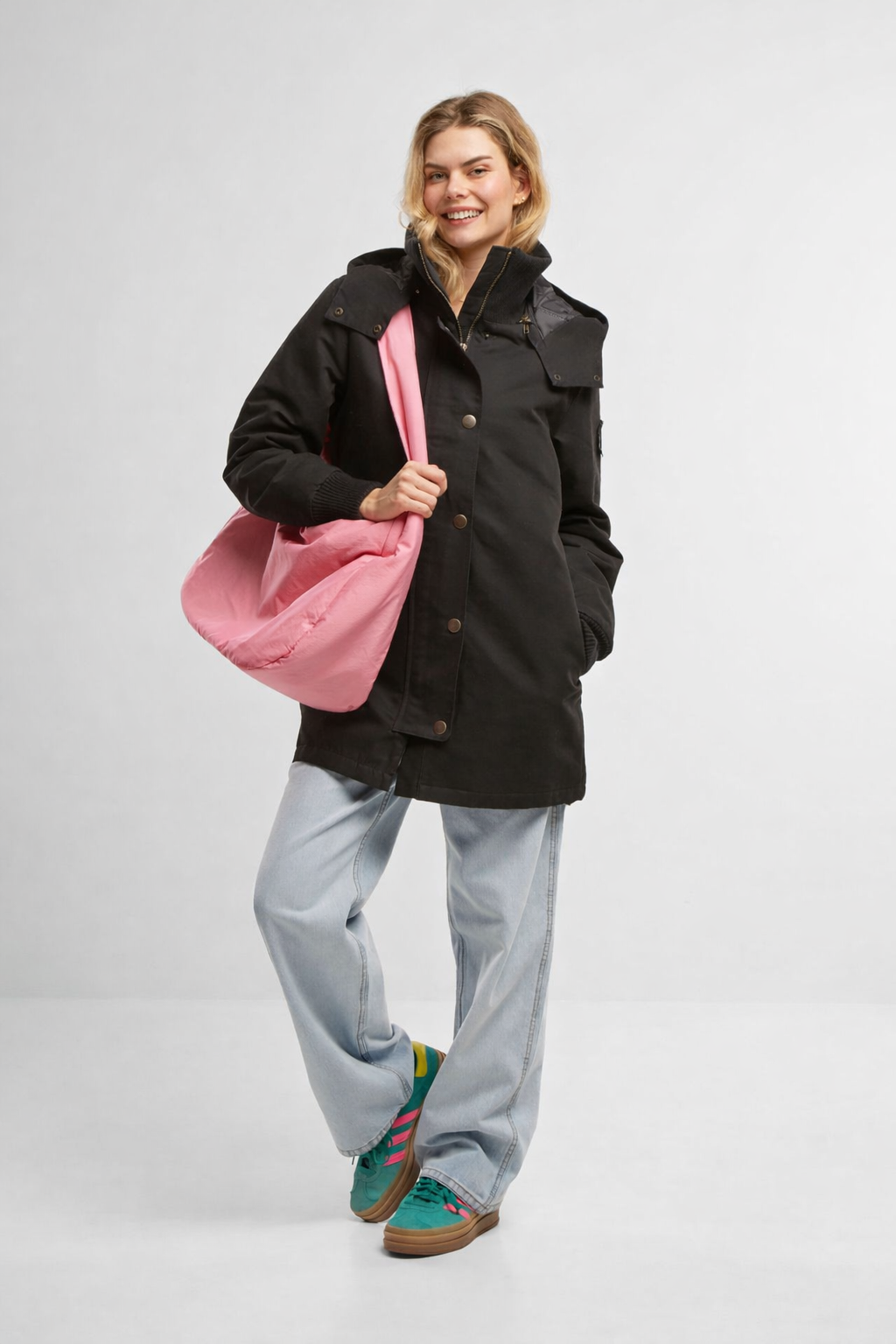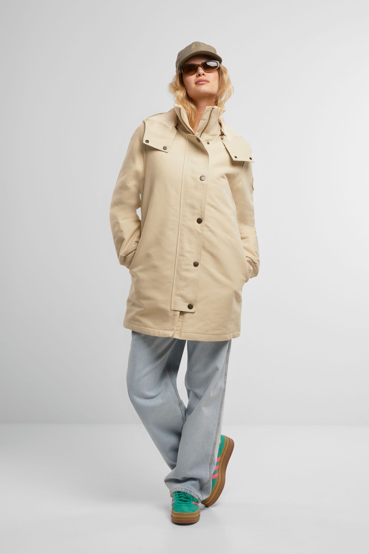 - Džepovi su praktično pozicionirani sa strane, omogućavajući sigurno čuvanje sitnica i zagrevanje ruku.